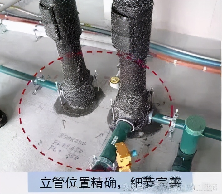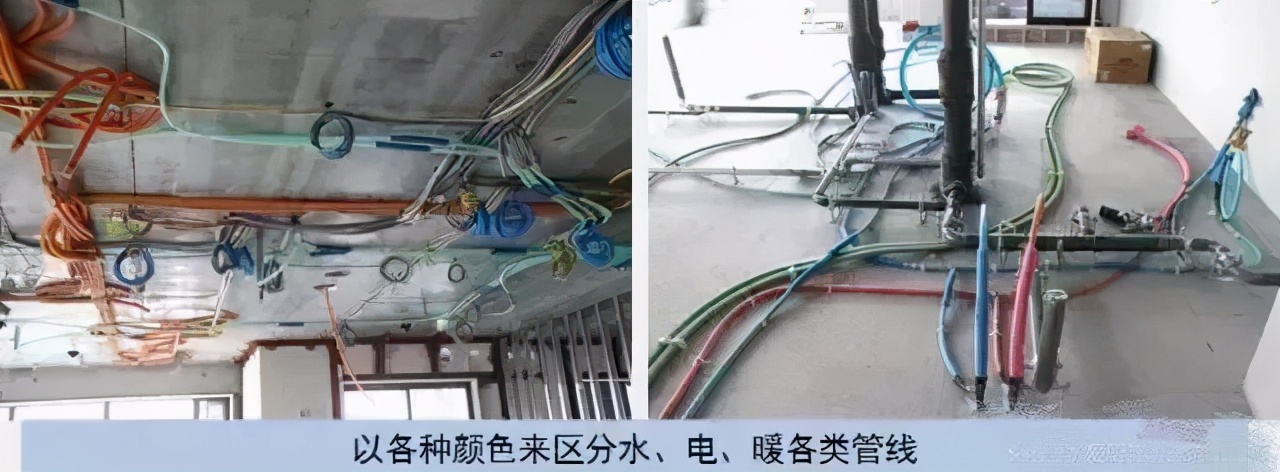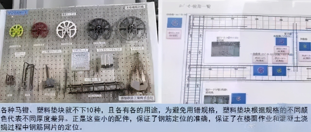 施工精细化:操作精细,考虑周全,细节完善。放线由第三方分包单位完成。放线图纸精确到毫米,采用各种颜色对不同控制线进行区分。现场放线细致,除了尺寸,还有文字说明。