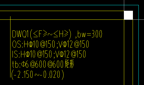 如图中DWQ1,长度为F轴~H轴,墙厚=300,OS代表外墙外侧贯通筋,H为水平筋,V为垂直筋;IS代表外墙内侧贯通筋,H为水平筋,V为垂直筋。