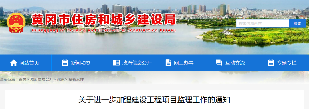 近日,黄冈市住建局发布《关于进一步加强建设工程项目监理工作的通知》。