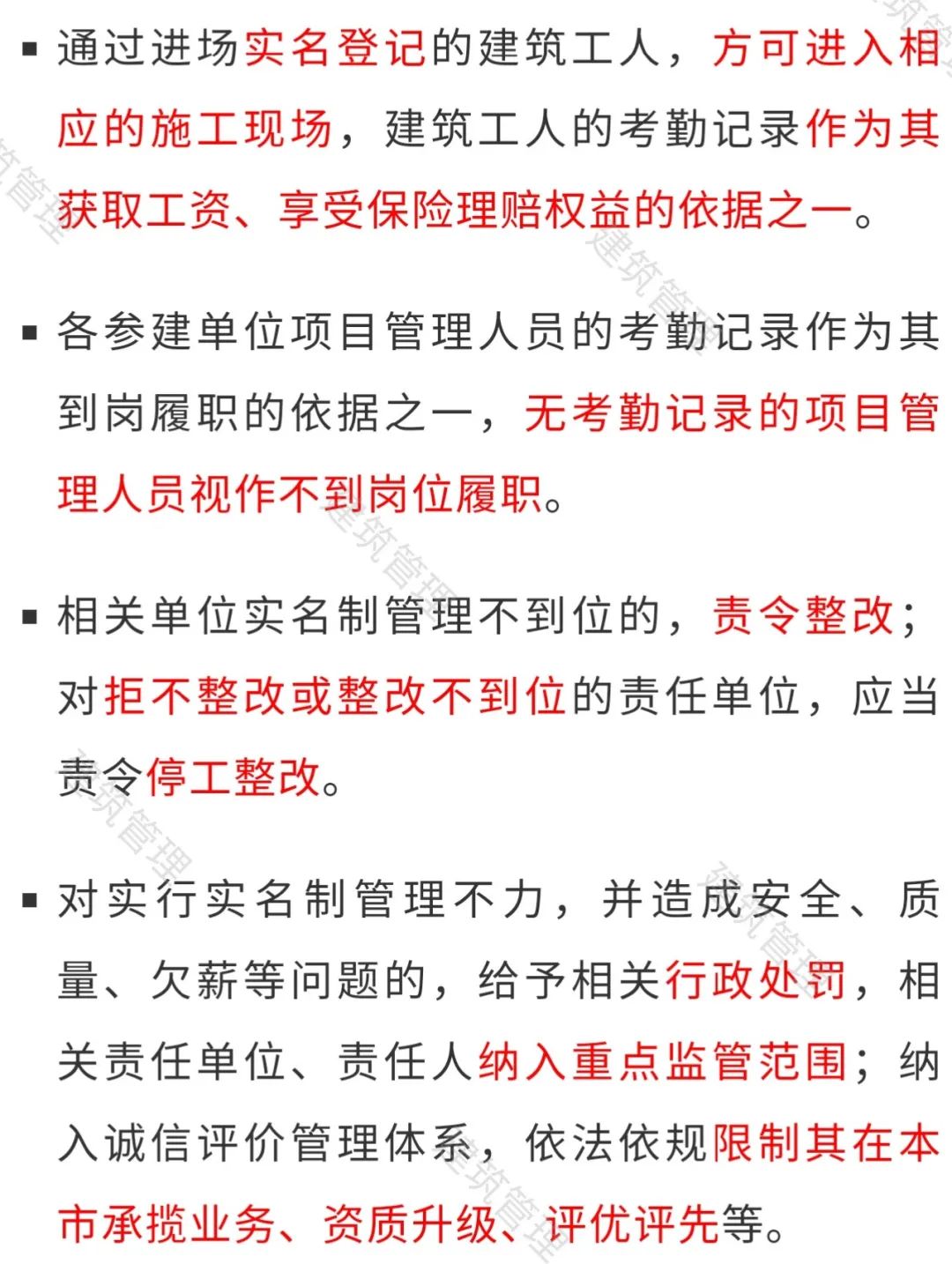 二、落实建筑工人实名制管理。各地要继续加大本地区建筑工人实名制管理工作推进力度,进入施工现场的建设单位、施工单位、监理单位的项目管理人员及建筑工人应全部纳入建筑工人实名制管理范围,强化对日常考勤的监督考核,对在岗人员不考勤,考勤更新不及时、不连贯的项目要及时下达整改通知书,并在信用评价系统中扣除建筑施工企业相应信用分。对不落实建筑工人实名制管理且情节严重的建筑施工企业,由各级住房城乡建设主管部门在公共资源交易网限制招投标行为。对建筑施工企业项目负责人考勤天数少于本月施工时间80%的,在“江西住建云”等平台限制相应市场行为。