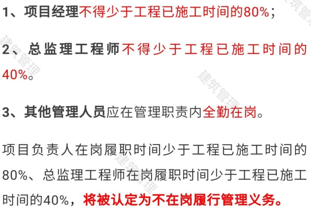 项目经理考勤率低于40%的,对施工企业立案查处!擅自更换人员的,按骗取中标处理!