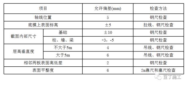 ①垂直度:木模板与钢制模板垂直度测量值偏差应不超过4mm;