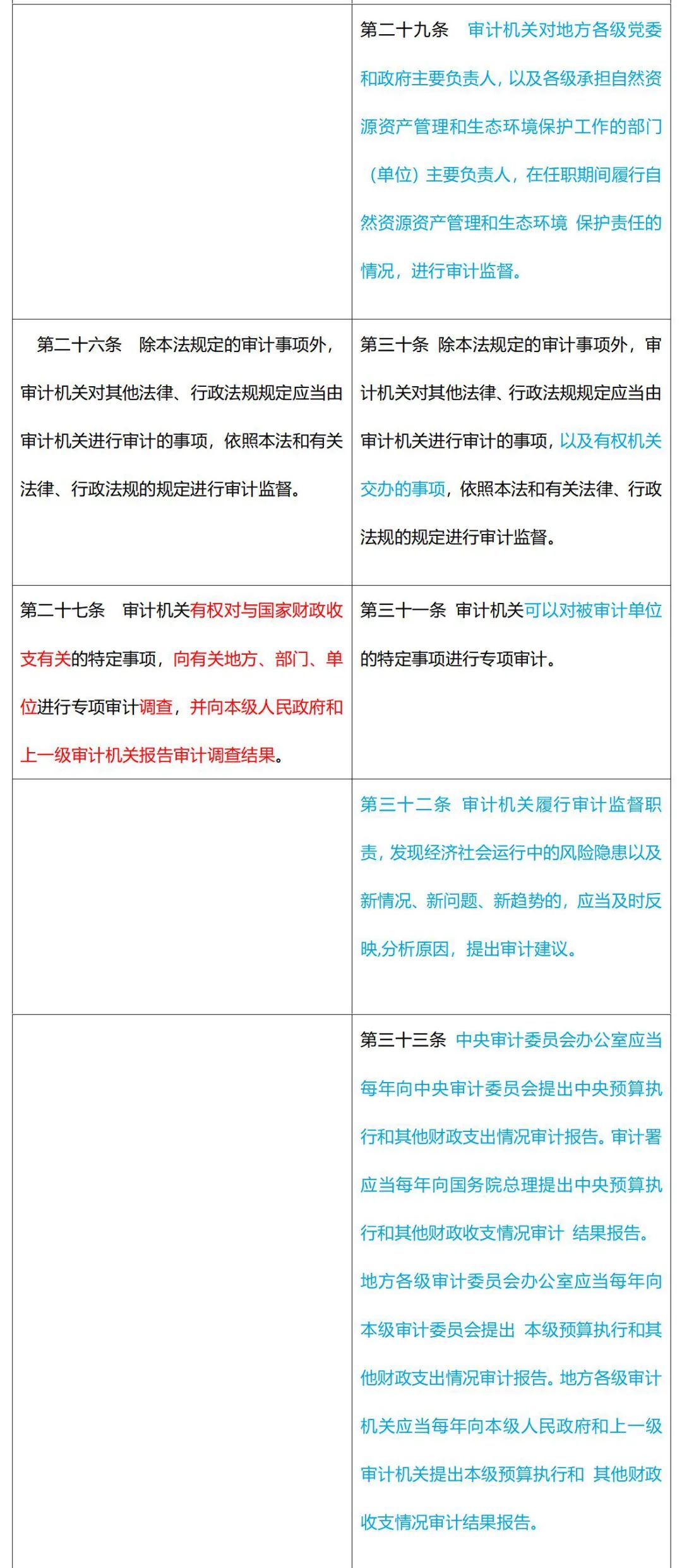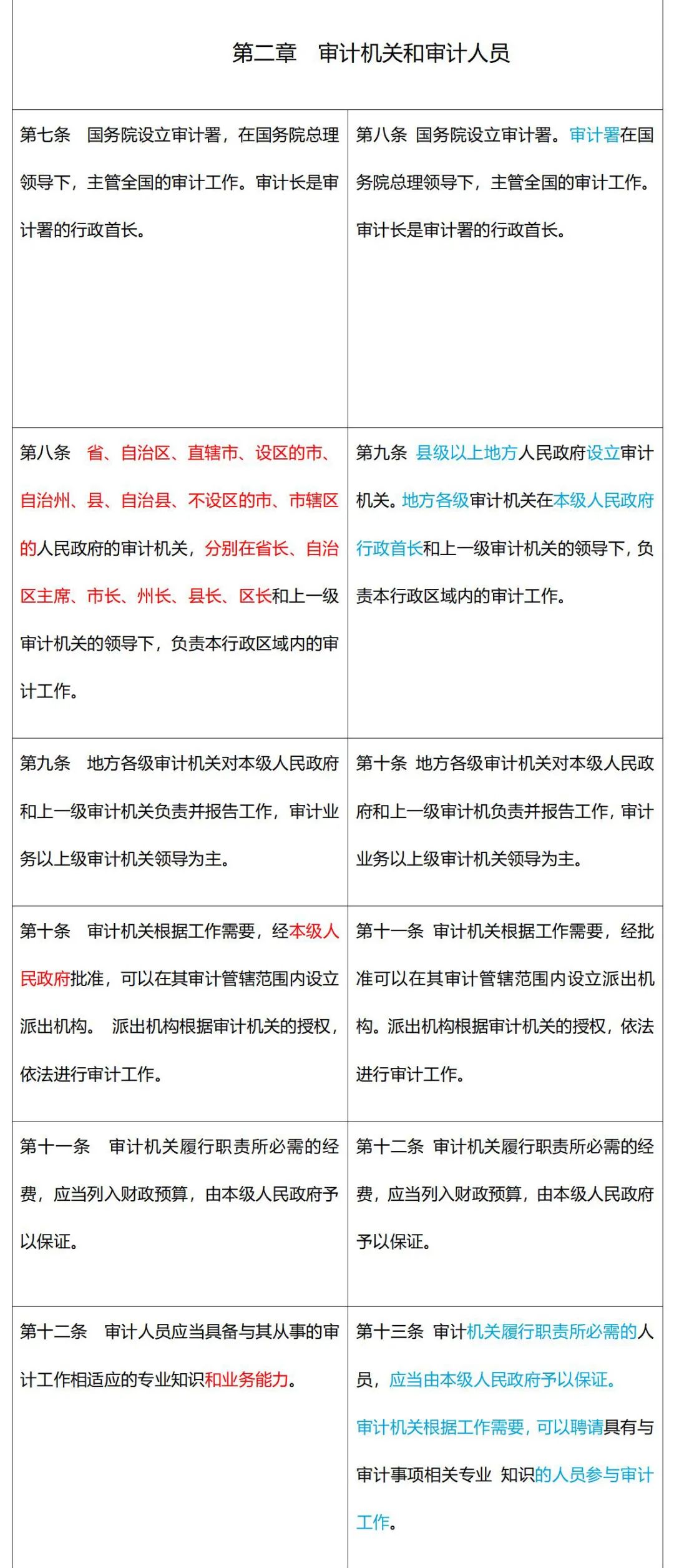 现行审计法共54条,此次修改了49条(修改后减少1条),新增14条,修订后共67条。并于2019年3月15日至4月15日向社会公布征求意见。