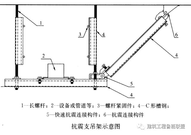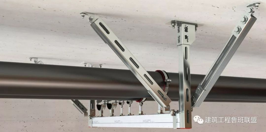 依据GB50981-2014《建筑机电工程抗震设计规范》,抗震支吊架是由锚固件、加固吊杆、抗震连接构件及抗震斜撑组成。组成抗震支吊架的所有构件应采用成品构件,连接紧固件的构造应便于安装。