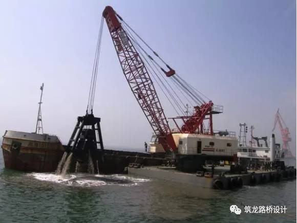 由于海底表层都是淤泥,沉管沉之前必须先把基础做好,用专用设备把表层的淤泥清干净:
