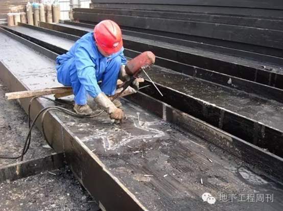 (3)型钢宜在桩体施工结束后30min内插入,插入前应检查其平整度和接头焊缝质量。