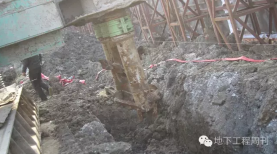 (2)有较多的地下障碍物无法施工;导槽沿线的地下障碍物必须清理干净,有必要时进行换填,当障碍物清理范围和换填范围较大时,应出具专项施工方案,同时调整SMW桩的施工参数,以确保桩体的施工质量和施工安全。