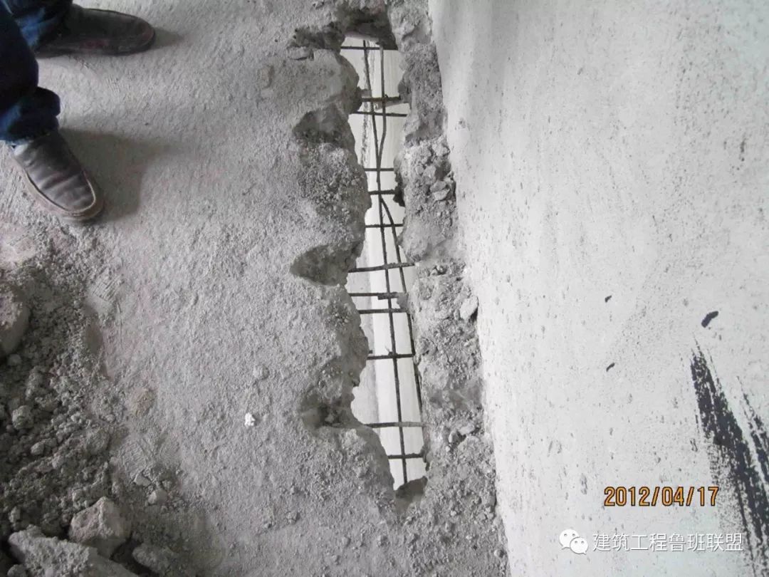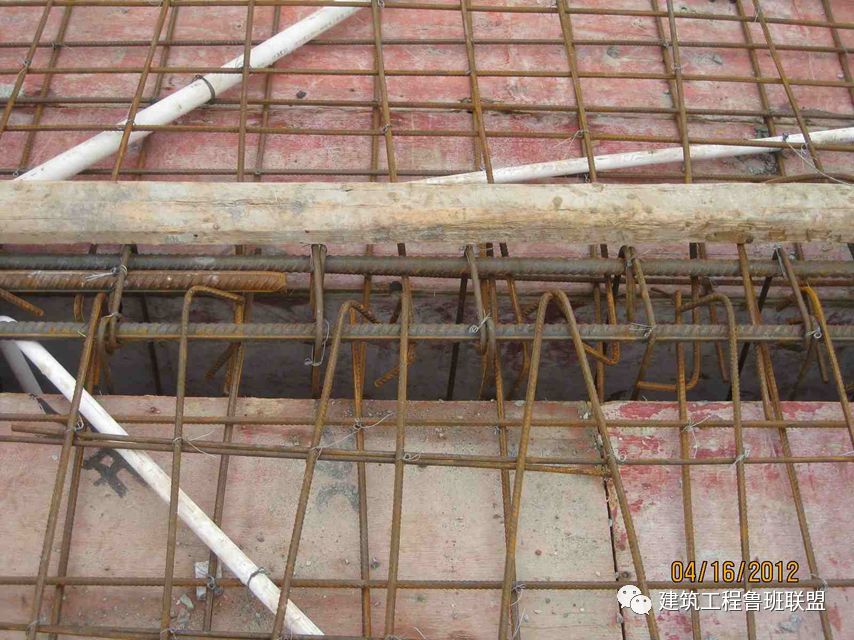 (1)施工操作不规范,钢筋工安装时,钢筋骨架绑扎不牢固,无钢筋支撑措施(马凳、悬挂法等),或支撑过少、分散,在浇筑混凝土时,震动使钢筋偏位。