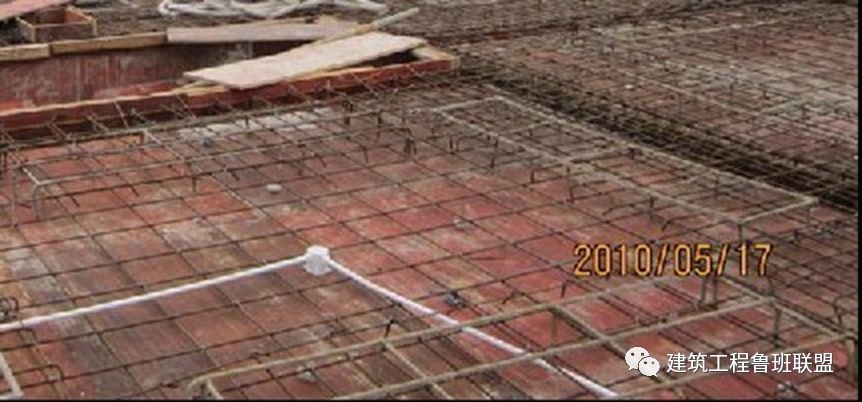 (4)不重视混凝土保护层的作用,如垫块强度低被挤碎,垫块设置不均匀,数量少,垫块厚度不一致及与纵筋绑扎不牢等问题影响纵筋偏位。