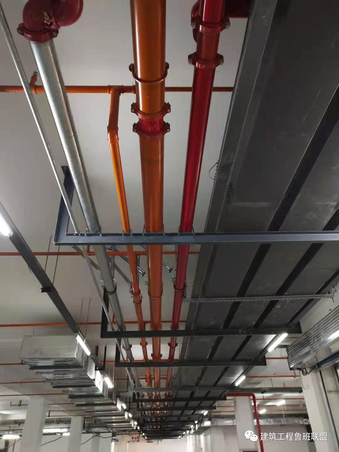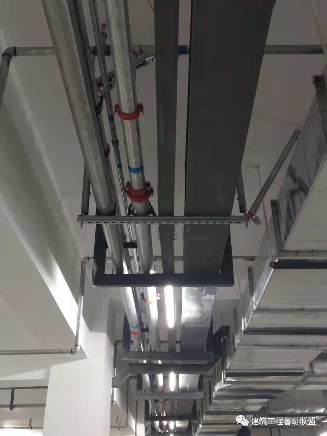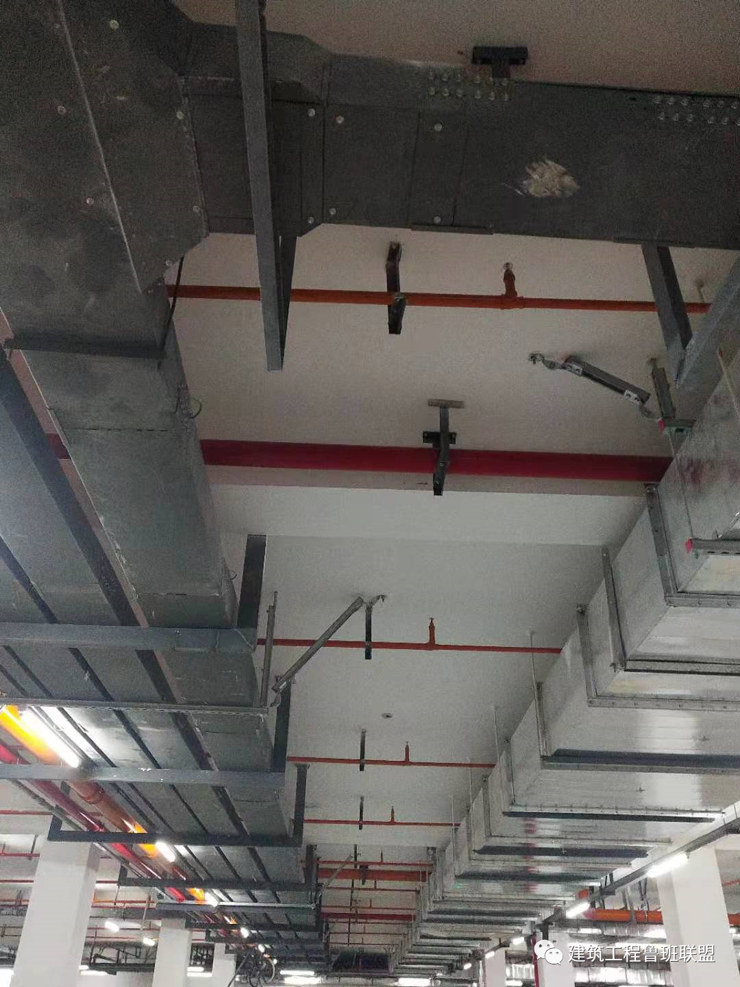 本工程地下车库管道采用BIM综合优化,合理的对管道净高分析,采用整体综合支架,安装完成后,抗震支架再进场二次安装。