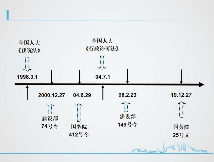 1998年3月1日起施行的《中华人民共和国建筑法》并没有对工程造价咨询企业提出资质要求。但2000年1月25日,建设部却颁布《工程造价咨询单位管理办法》(建设部令第74号)设定工程造价咨询企业的资质要求,并制定了资质等级、标准以及资质的行政审批要求等相关规定。