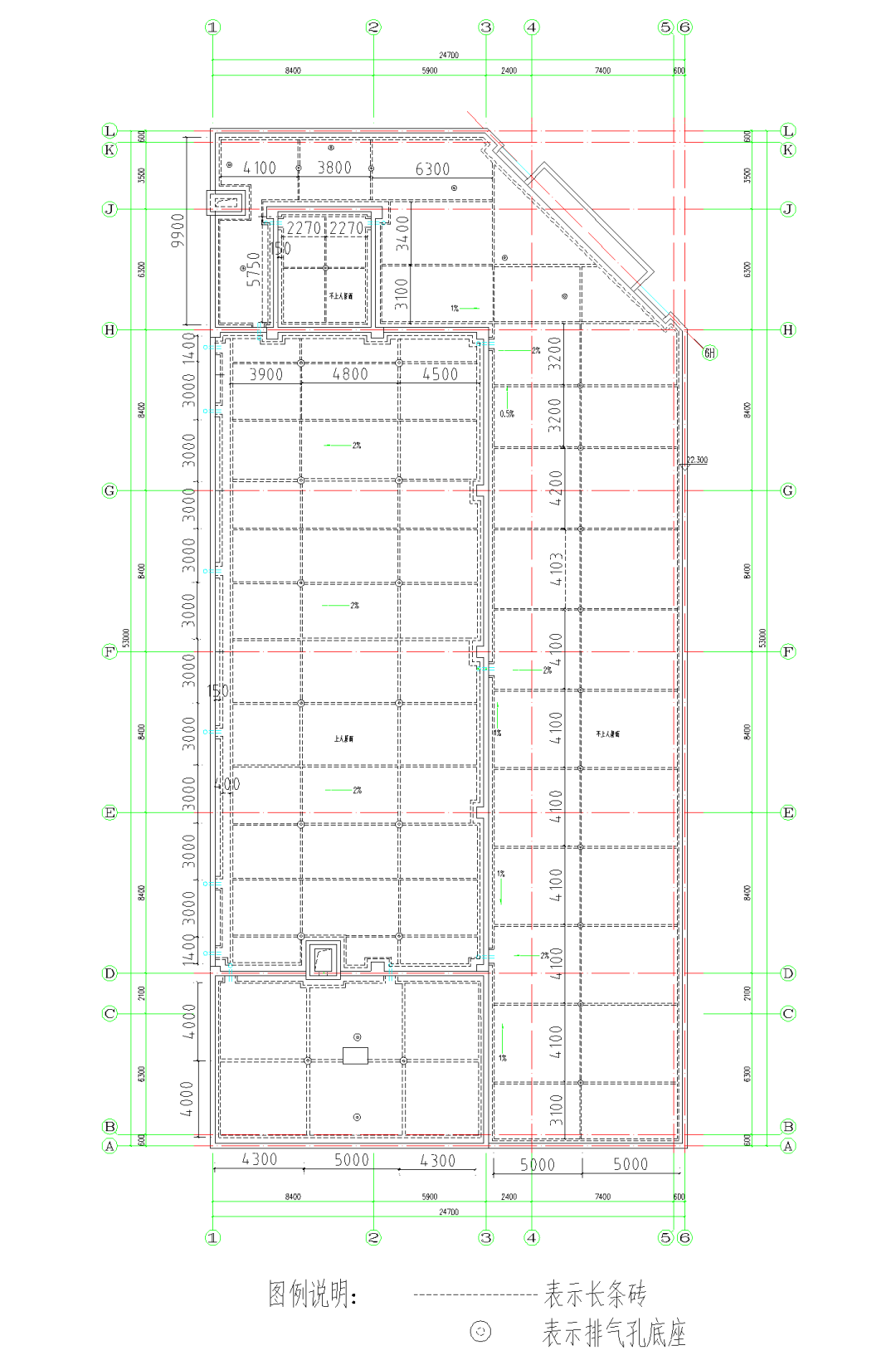 1、防水层上放线、打底、长条砖标高控制、坡度要求;