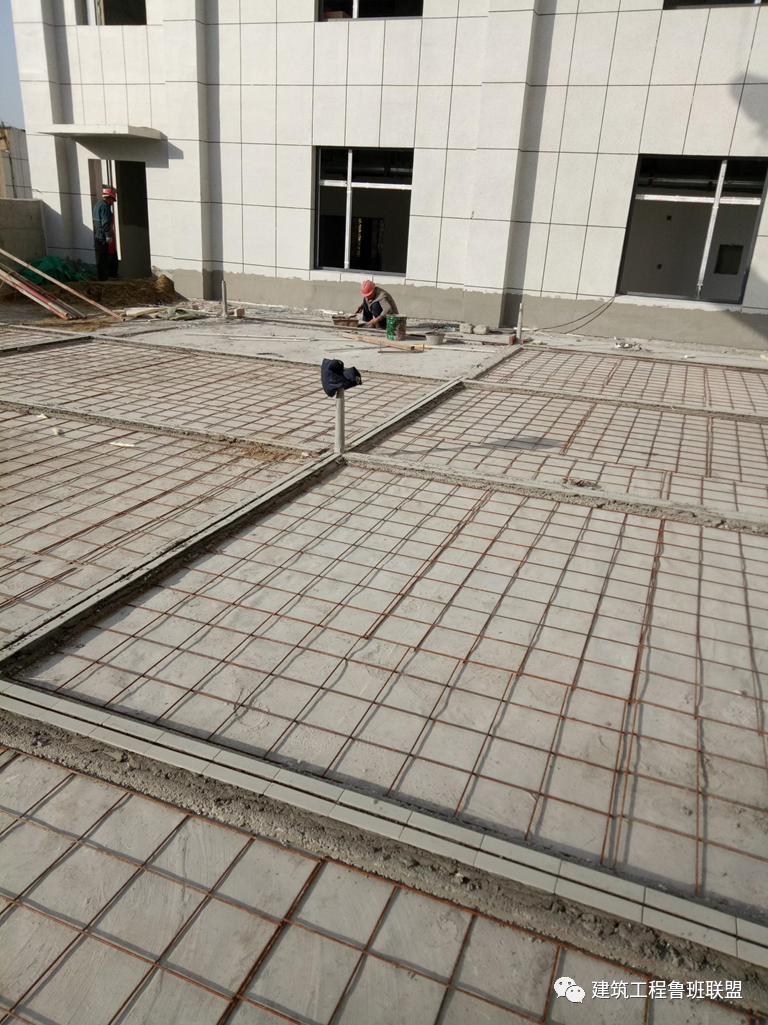 3、钢筋网片在分格缝处瓷砖底部断开,网片位置要控制到位,必须置于细石混凝土中上部。分格缝瓷砖施工完后强度要满足施工要求。
