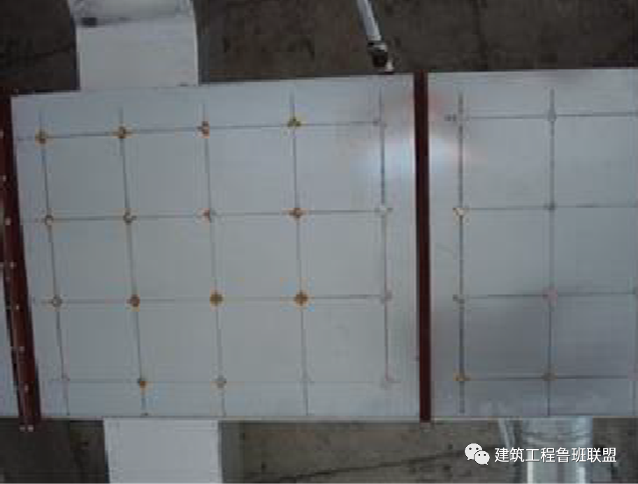 1、通风管道安装系统中主、干管长度超过20m,没有设置防止摆动的固定点;干管长度超过20m,没有设置防晃支架。支吊架不宜设置在风口、阀门、检查口及自控机构处,离风口或插接管的距离不小于200mm。对通丝外露长度做统一要求,对于长短不一的要进行切割处理。1、风管在穿越需要封闭的防火、防爆的墙体或楼板时,预埋管、防护套管钢板厚度不小于1.6mm,风管与防护套管之间采用不燃的柔性材料进行封堵;2、防火阀设置独立吊架,并保证防火阀距墙表面的距离不大于200mm。1、重要设备保温时,由于形状不规则,要事先形成一个保温方案,根据保温方案对实物进行精确测量,准确下料(严禁出现多下料或少下料情况),胶水涂抹均匀(严禁为求速度有漏刷胶或刷少胶现象);2、法兰、变径等突出部位必须单独下料保温,表面应平整, 当采用卷材或板材时,允许偏差为5mm;采用涂抹或其它方式时,允许偏差为10mm;防潮层(包括绝热层的端部)应完整,且封闭良好;其搭接缝应顺水。根据规范规定及施工工艺标准要求,矩形风管与设备保温钉应分布均匀,其数量底面每平方米不少于16个,侧面不少于10个,顶面不少于8个,首层保温钉至风管或保温材料边缘的距离不大于120mm。风机吊装时,吊架及减振装置应符合设计及产品技术文件要求,安装隔振器的地面应平整,各组隔振器承受荷载的压缩量均匀,高度误差应小于2mm。减振器要根据设备的重量, 选择相匹配的减振器。吊杆与托架连接处采用双螺母紧固,保温风管与托架之间应设绝热衬垫,防止产生冷桥,绝热衬垫厚度不小于保温厚;采用木质材料衬垫时,要进行防腐处理。
