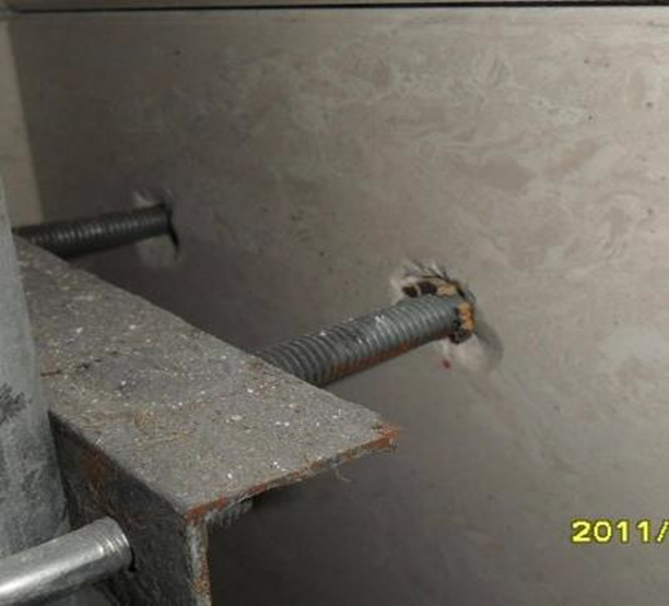 2、法兰螺栓外露丝扣突出螺母长度大于1/2 螺杆直径;1、尽量要选用与管件同材质的螺栓,若采用非统一材质时,在相互接触面采取绝缘措施;2、材料进场验收加强管理,确保采购法兰与设备法兰规格、型号一致;3、连接法兰的螺栓,突出螺母长度不应大于螺杆直径1/2,宜为2~3扣。