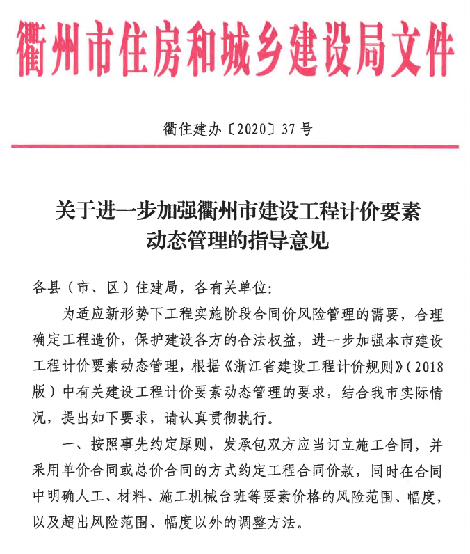 附件:衢住建办〔2020〕37号关于进一步加强衢州市建设工程计价要素动态管理的指导意见.pdf
