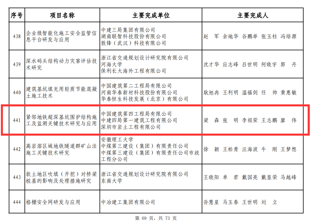 刷新中国民用建筑基坑最深记录 打造深圳地标性摩天楼 6月10日 由中建四局承建的 全国房建最深基坑——恒大中心项目 基坑8道内支撑施工全面完成 这座42.35米超深基坑项目 继地连墙节点,桩基础节点两大节点后 将完成基坑支护及土石方工程 “三部曲”的圆满完成 标志着中国民用建筑最深基坑就此诞生 为恒大深圳湾超级总部基地 进入主体工程建设奠定了坚实基础 项目全景实拍 碧海畔大厦立· 精诚力量筑高端工程 深圳恒大中心项目 位于深圳市南山区深圳湾超级总部基地 建设高度393.9米 基坑开挖深度42.35米 开挖面积约8451平方米 支护总长约370米 项目刷新了中国民用建筑基坑最深记录 是中建四局 继广州东塔、西塔、深圳京基100后 在华南地区承接的 第四个超390米的超高层项目 建成后将成为恒大集团的全国新总部大楼 项目效果图 2018年3月基坑围护地连墙施工 打响项目建设第一枪 2019年11月基坑支护及工程桩施工 2020年5月土方开挖内支撑开始施工 2021年6月10日完成8道内支撑施工 …… 历经380天 中建四局用科技创新 助推恒大深圳湾超级总部基地建设 项目完成施工节点 深基坑大难题 · 攻坚克难达时代使命 🌟 最硬:进入微风化花岗岩层最深处达20多米,微风化花岗岩层强度最高达136MPa; 🌟 最严:地铁隧道水平位移和沉降位移,控制在10mm以内,预警值6mm; 🌟 最近:基坑距地铁盾构边最近仅3米; 🌟 最深:国内最深基坑,施工工期长、难度大。 基坑支护结构与地铁位置关系 万丈高楼平地起 攻克“四最”不容易 项目部以不惧难、迎难上的精神 逢山开路遇水架桥 一路过关斩将,攻克难题 01 项目基坑深度42.35米 地连墙深度最深达64.5米 成槽深度进入微风化粗粒花岗岩平均20米 微风化粗粒花岗岩强度最硬达136Mpa 项目部引进全球最大吨位旋挖机 搭配世界最强的双轮铣槽机 采用旋挖钻+成槽机+铣槽机相结合的先进工艺 轻松破除超硬岩层 “三机联动”施工技术 即旋挖机引孔+成槽机抓取上部土层 +大功率宝峨铣槽机 铣削岩层的地下连续墙成槽技术 进行全工序穿插施工 最大限度的提高地下连续墙成槽施工的工效 节省60%工期 提高地连墙成槽质量 有效的保证了基坑及地铁的安全 02 地铁旁施工挑战多 对地铁隧道变形值要求极其严格 项目采用全自动全天候地铁隧道监测技术 引用Leica TM50测量机器人 实现地铁隧道管片亚毫米级变形监测 项目集成测量机器人、静力水准仪和激光测距仪等 多项先进自动化监测设备 实现“互联网+监测”的远程实时监控 多传感器监测综合控制 数据风险智能管控 自动变形监测系统示意图 激光测距仪 灌液式静力水准仪 地铁移动扫描仪 Leica TM50 测量机器人 03 基坑北侧紧靠地铁11号线和9号线 基坑支护距地铁11号线隧道结构最近3米 为了保护地铁运行安全 项目采用轴力伺服系统施工技术 通过现场自动化设备和SaaS云服务平台 实时监测支撑体系与围护结构的相对变形 为控制系统提供测控依据 这也是国内首次在超大深基坑的混凝土支撑上 采用支撑轴力伺服系统 支撑轴力伺服系统 04 地下室结构施工工期长 随着基坑开挖 工人上下基坑困难 劳动效率显著降低 项目部自主研制逆式施工电梯 设置倒置钢基础平台附着于首道内支撑梁上 且电梯标准节附着在支撑梁上 建成华南地区第一台超深基坑逆式施工电梯 有效地解决了上下基坑难问题 大大提高了工作效率 华南地区第一台超深基坑逆式施工电梯 技术强频获奖 · 创新发展摘累累硕果 攻坚克难,内外求索 恒大中心项目以先进技术为保障 从容面对一项项挑战 充分发挥中建四局精诚精神 注重精细管理,强化现场监控 日夜奋战在施工一线 最终确保每一个节点 优质按期兑现 项目建设者 2018年 中国工程院院士肖绪文 到深圳恒大中心项目调研 肖绪文表示 恒大中心项目遇到的施工难点国内少见 肖绪文为项目把脉问诊,对症下药 指导项目部采用全回转全套管咬合桩 有效的将地下连续墙与地铁隔离 同时,也解决了因咬合桩自身成孔施工过程 对土体的扰动导致地铁变形问题 中国工程院院士肖绪文调研深圳恒大中心项目 截至目前 深圳恒大中心项目已获得 中国安全生产协会安全科技进步三等奖 广东省土木建筑学会科学技术二等奖 另外,广东省省级工法3项 江西省省级工法1项 中国建筑青年创新创效大赛优秀奖一项 科技成果鉴定4项国内领先 发表论文16篇 已授权专利5项,受理专利16项 等多项科技成果 再起新地标 中建四局秉精诚精神、持精品匠心 “筑”力深圳新地标建设 必将以更优异的成绩 献礼党的百年华诞 精诚善建 精彩四海 素材来源丨一公司 作者/编辑丨曹亦斌、李永芳、陈姝杉 审核丨蔡敏、曹克全