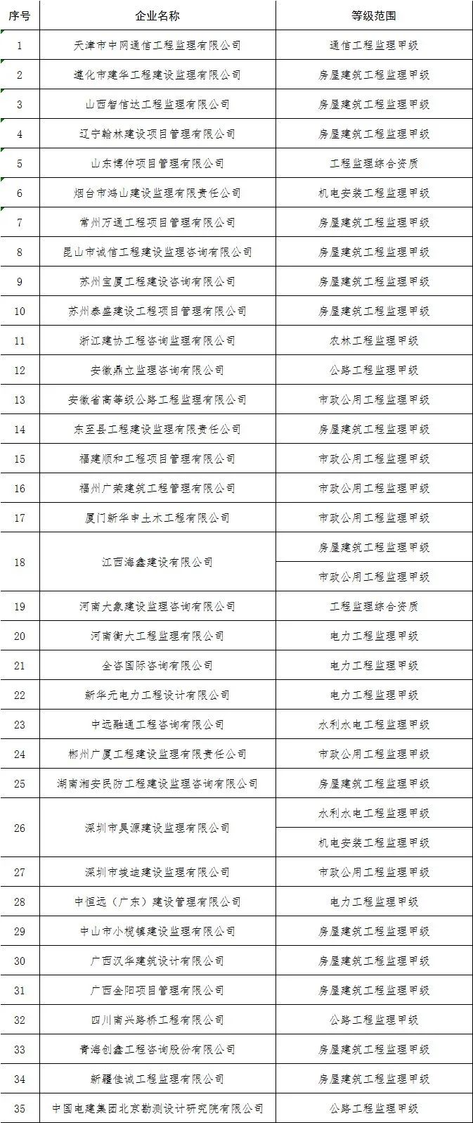 4.核准工程监理企业资质的单位名单
