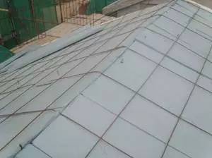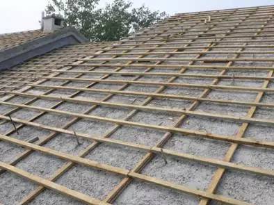 挂瓦采用方木,底层为顺水条,上层为挂瓦条,顺水条与挂瓦条形成整网与预埋在屋顶结构板上的ø6钢筋连接,挂瓦层方木均要进行防腐处理,还需用涂料将连接筋根部涂刷严密,以防腐防渗。