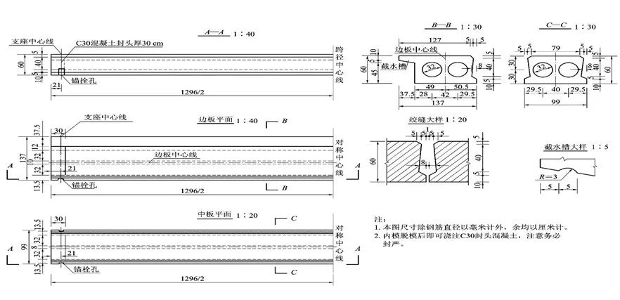图11-13 装配式预应力空心板构造(单位:cm)
