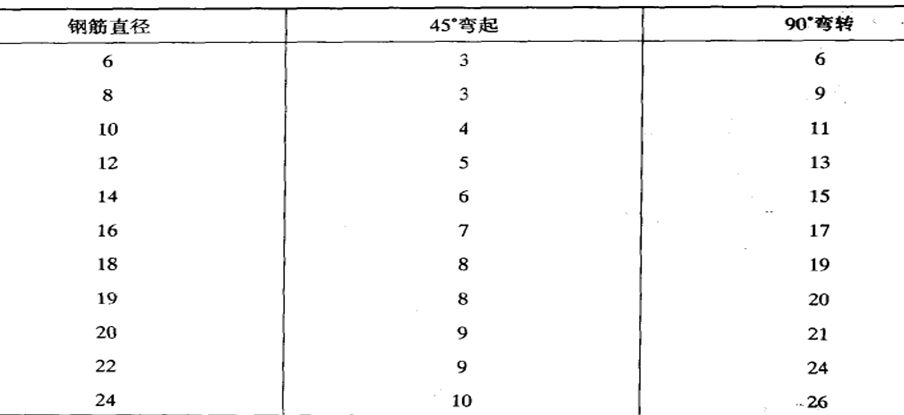 为了简化计算,钢筋弯钩的增长数值和弯起的折减数值均编有表格备查,如表11-3、表11-4所示。