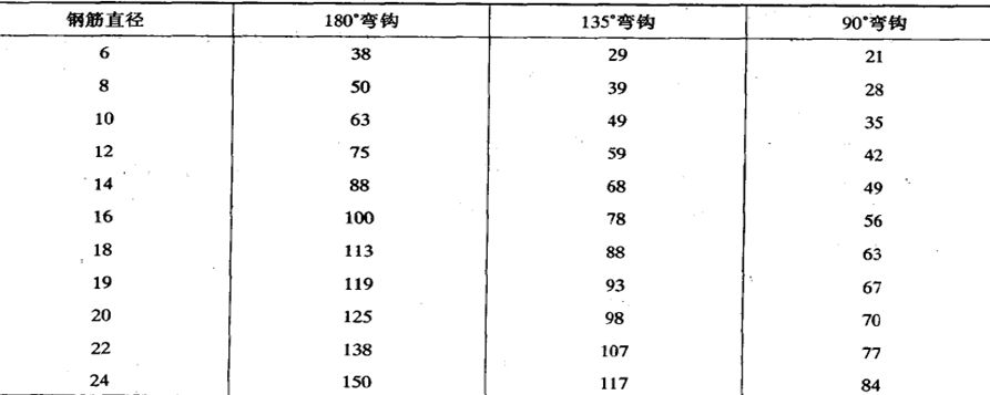 表11-3 光圆钢筋弯钩增长数值(单位:mm)