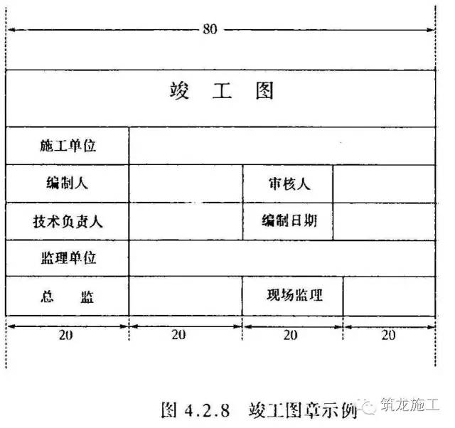 竣工图章应使用不褪色的红印泥,应盖在图标栏上方空白处。(图章示例见下图2)