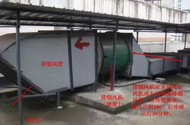 排烟系统采用自然通风方式或机械排烟方式,将烟气排至建筑物外的系统。