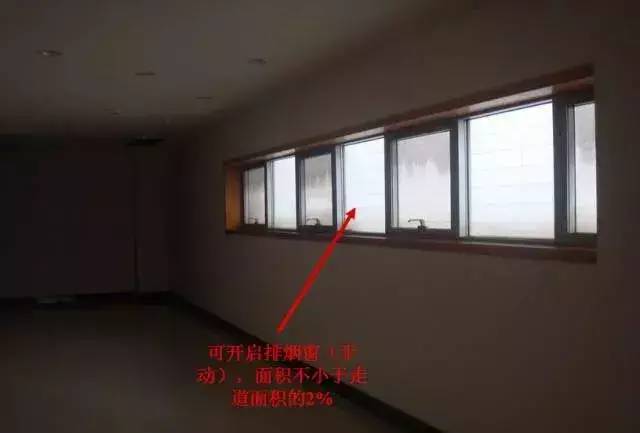 注:此处(房间和走道)的自然通风不同于楼梯间和前室的自然通风。虽然它们的原理相同,但此处是作为排烟措施,而楼梯间和前室是作为防烟措施。