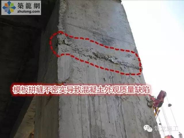 1 模板拼缝问题引起的混凝土质量缺陷现象及原因:
