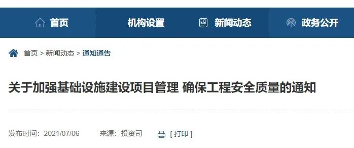 7月6日,国家发改委发布《关于加强基础设施建设项目管理确保工程安全质量的通知》,本通知自印发之日起施行。