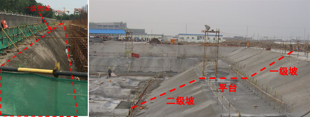 1、坡率应根据土层性质、挖深确定,挖深大于4m应采用多级放坡,多级放坡应设置平台;土质条件较好的地区,应优先选用天然放坡;软土地区大面积放坡开挖的基坑,边坡表面应设置钢筋网片护坡面层;