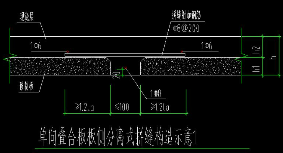 相邻预制板块之间可能是密拼(如图一所示),也可能是带一定宽度的拼缝(如图二所示),各项目的具体要求需要看“预制构件结构设计总说明”或单独的预制构件节点详图。