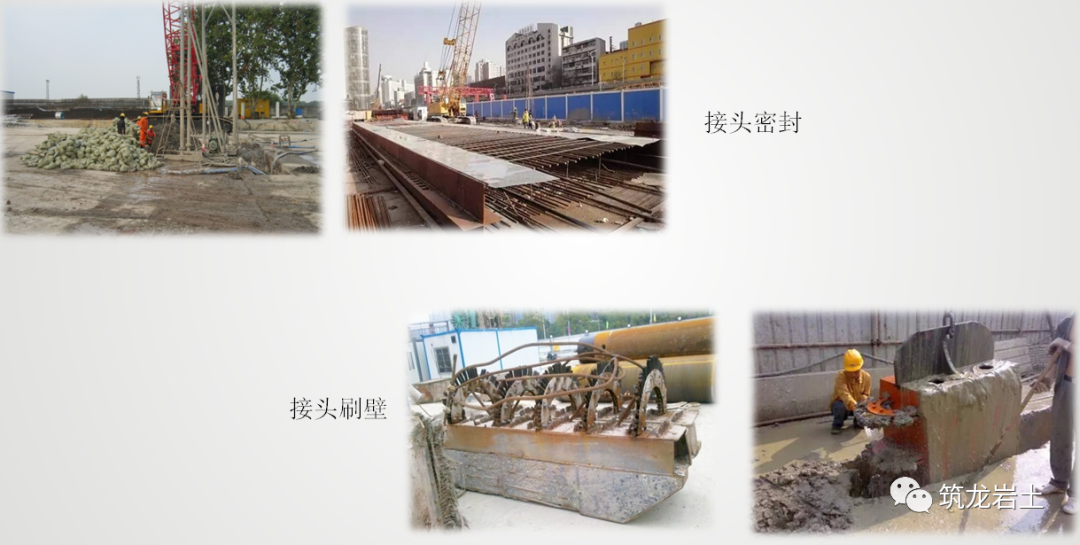 上述几种接头方式主要的施工控制点在防止接头混凝土绕流的问题上,常规的工艺就是堵,堵头一定要插到底,堵头背后一定要回填密实。但从实际来看,填充密实效果难以保证,新旧槽段界面虽然用刷壁器多次清刷,但依然会留下夹泥,导致该处混凝土不密实,产生漏水。