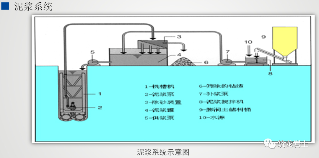 通过泥浆对槽壁施加压力以保护挖成的深槽形状不变,灌注混凝土时把泥浆置换出来。泥浆材料通常由膨润土、水、化学处理剂和一些惰性物质组成。◆形成不透水的泥皮,防止地下水的渗水和槽壁的剥落,保持槽壁稳定根据现场的地质条件,一般泥浆采用膨润土泥浆,其材料组成有膨润土、CMC(纤维素)、Na2CO3(纯碱)、水。