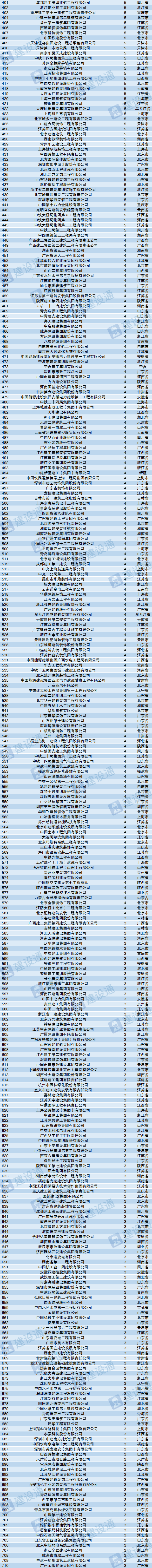 注:因文章内容篇幅有限,排行榜仅展示了获得鲁班奖3个及以上的企业,数据仅供参考。