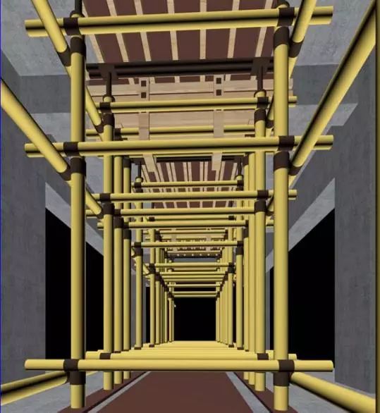 这个图片看得比较清楚,水平杆是分开的,而且是错开设置的。后浇带设置独立的剪刀撑,梁板模板剪刀撑单独设置,拆模时,将灰色支撑拆掉,保留黄色支撑就可以了!
