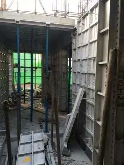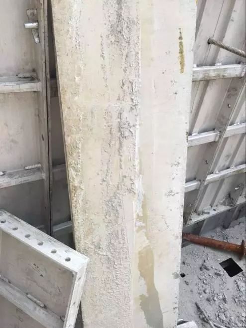 首层铝模拆模后,现场木工未对铝模进行及时清理,因为会造成后期砼表面出现蜂窝麻面、孔洞等现象。