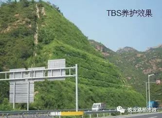 4)养护:喷播1~2天后开始养护,养护初期应让坡面保持湿润状态,初期养护时间为45~60天,以每天浇水为主,早晚各一次。待草长到10cm以上时靠自然降水,但如果连续高温干旱时间超过5天,应安排浇水。