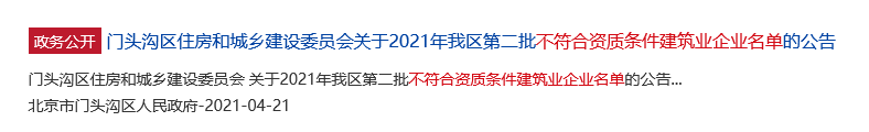 整改期间暂停为其开具出京承揽工程证明;