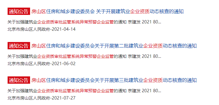 北京市房山区通报了三批名单,涉及1078家预警企业。