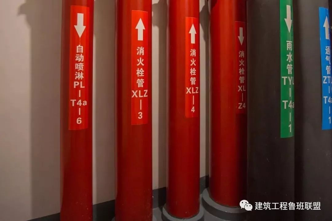 文字+箭头的标注位置。应标注在:管道(风管)的起点、终点、转弯处、分支处、设备进出口处、穿越墙体楼板处等,设置在通道、操作面一侧等醒目部位。