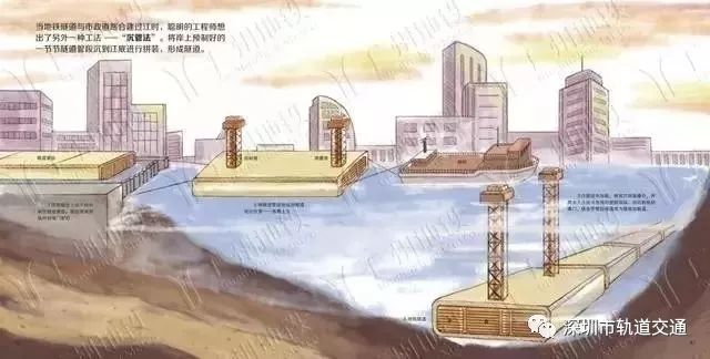 当地铁隧道与市政道路合建过江时,聪明的工程师想出了另外一种工法——“沉管法”。将岸上预制好的一节节隧道管段沉到江底进行拼装,形成隧道。