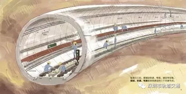 隧道完工后,要铺设轨道、电缆、通信等设施。隧道、轨通、电通是地铁建设的三个关键节点。