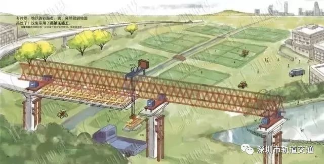 有时候,地铁跑着跑着,咦,突然就到地面高处了!这里采用了高架法施工。