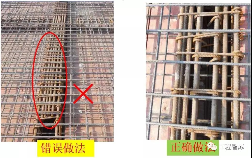 4、为保证门窗洞口标高位置正确,在洞口竖筋上划出标高线。门窗洞口要按设计要求绑扎连梁钢筋,锚入墙内长度要符合设计要求。另外,配合其他工种安装预埋管件、预留洞口等,其位置、标高均应符合设计要求。