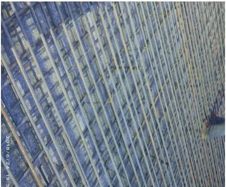 2、墙身分布筋的安放顺序:应先绑竖筋向定距卡,把墙身所需的竖向分布筋立放在墙柱边与墙柱稍微固定。再绑横筋向定距卡,然后自上而下将横向分布筋固定于墙上。最后固定纵向分布筋。
