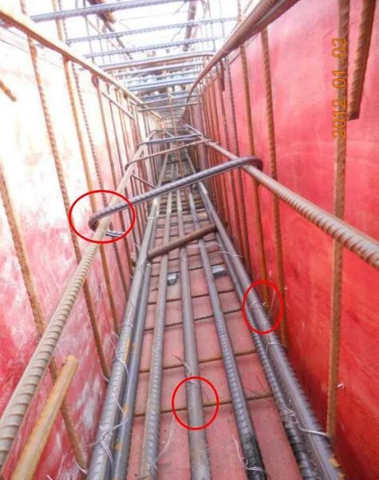 7、梁钢筋绑扎时应防止水电管线将钢筋抬起或压下,且梁钢筋未验收合格前应防止防雷接地将其端部或主、次梁相交处焊牢。