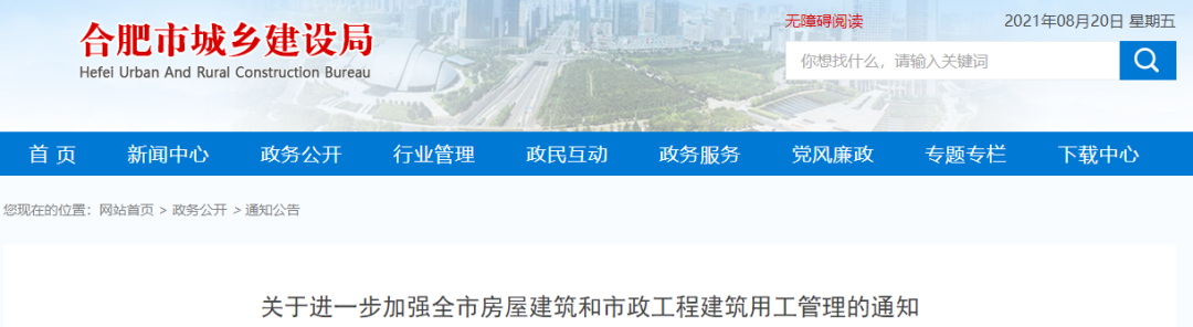 8月19日,合肥市住建局发布《关于进一步加强全市房屋建筑和市政工程建筑用工管理的通知》。明确: