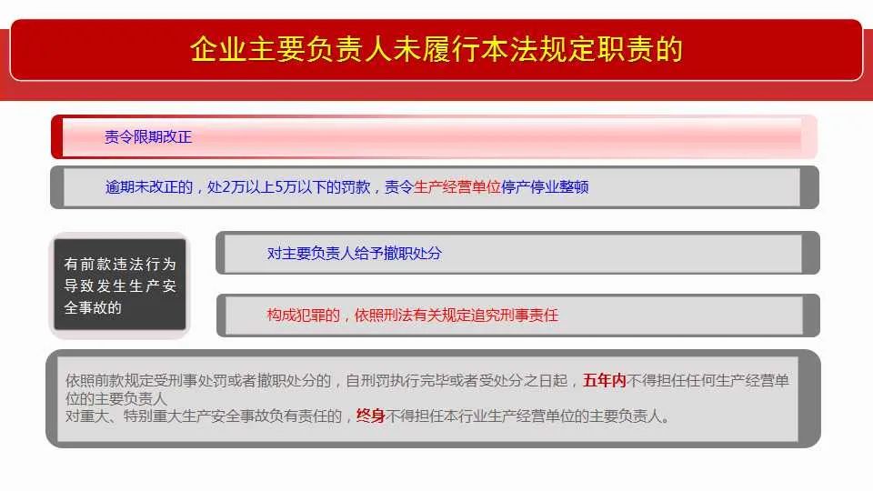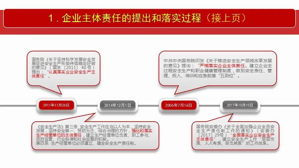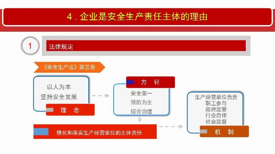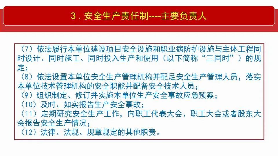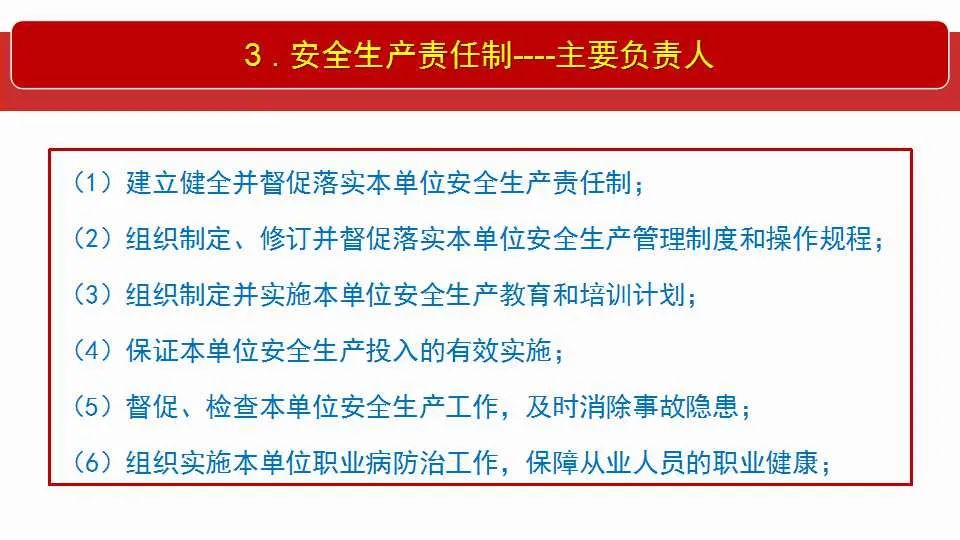 企业董事长、总经理等法定代表人和实际控制人是安全生产第一责任人,对本单位的安全生产工作全面负责,应亲自推动安全生产制度的建立,经常深入一线检查安全生产工作,监督安全生产制度落实,研究解决安全生产突出问题。每年至少向职工大会或者职工代表大会、股东会或者股东大会报告一次安全生产情况,接受职工、股东监督。加强对下属独立法人单位的监督检查,督促其落实安全生产责任。企业必须牢固树立法治观念,从事生产经营活动应依法取得安全生产相关证照和许可,符合法律法规、国家和地方标准或者行业标准规定的安全生产条件,及时主动获取并严格执行与安全生产相关的法律法规标准,依法健全完善安全生产规章规程和安全防范措施,严禁使用国家和省明令淘汰的危及生产安全的设备及工艺,及时淘汰更新陈旧落后的设备及工艺。生产有毒有害物质或发生事故可能影响公众安全健康的高危行业企业,应建立与公众沟通的交流机制,定期公布相关信息,自觉接受社会监督。